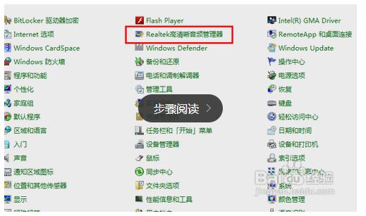 2. 在控制面板中打開高清音頻管理器。即圖中標(biāo)注區(qū)域。